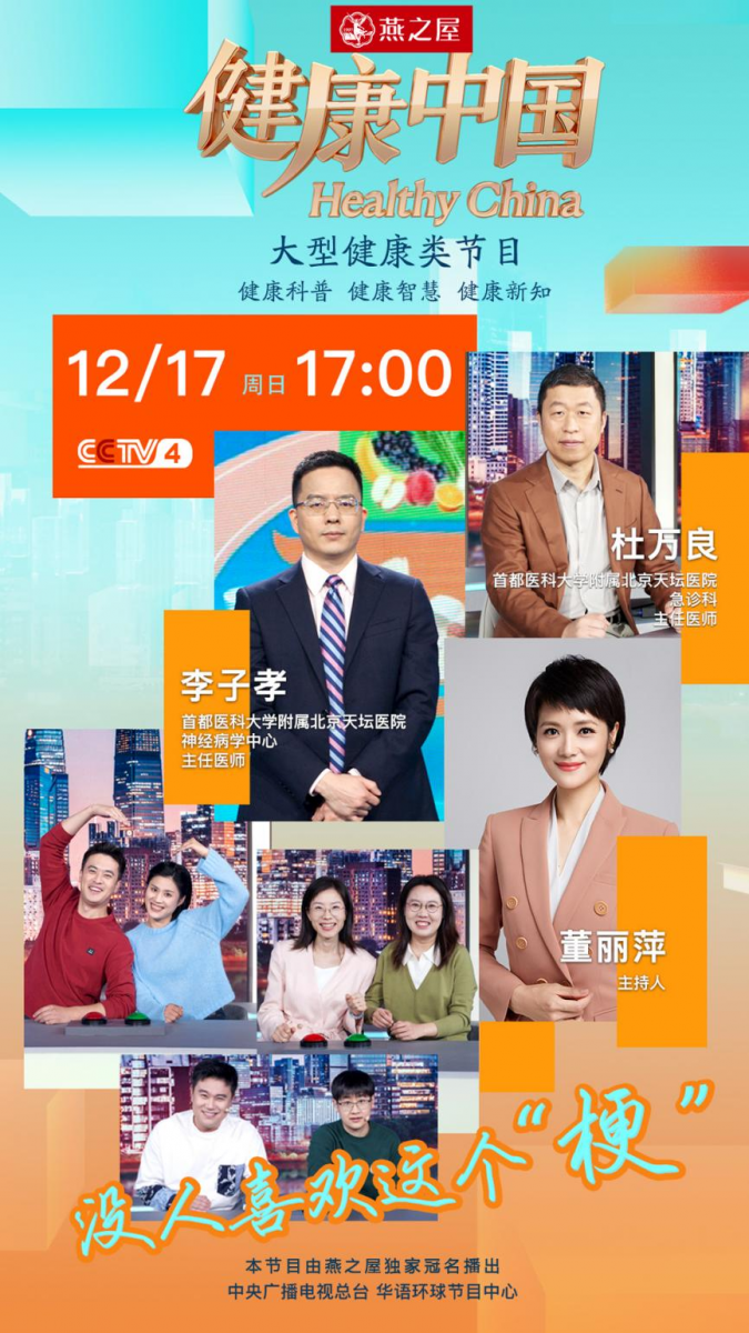 本期,由燕之屋獨(dú)家冠名的CCTV-4大型健康類欄目《健康中國(guó)》特邀首都醫(yī)科大學(xué)附屬北京天壇醫(yī)院急診科主任醫(yī)師杜萬良和首都醫(yī)科大學(xué)附屬北京天壇醫(yī)院神經(jīng)病學(xué)中心主任醫(yī)師李子孝為大家解讀腦梗死,從專業(yè)的角度分析它的致病機(jī)理和預(yù)防手段。