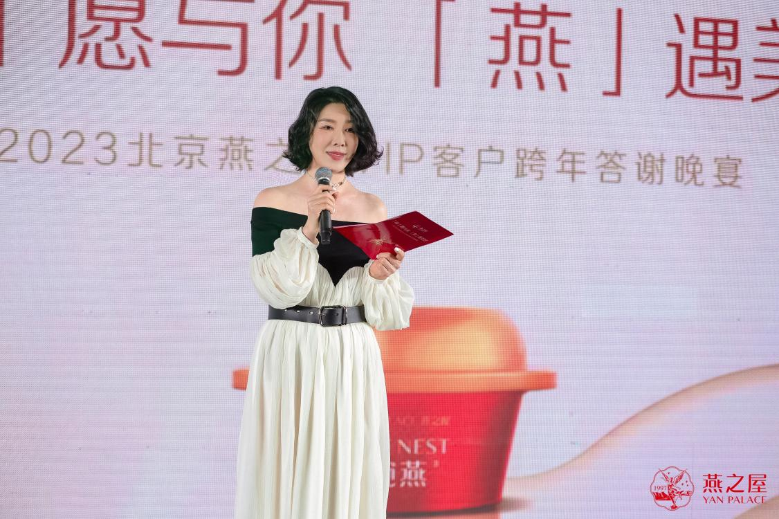 華燈初上,北京燕之屋總經(jīng)理薛一瑤上臺致辭,她首先表示:非常感謝各位新老朋友在百忙之中抽出寶貴的時間來參加北京燕之屋VIP客戶跨年答謝晚宴,在這個美妙的夜晚,不僅是為了慶祝圣誕和元旦的到來,更是為了感謝每一位VIP客戶對燕之屋品牌的厚愛與支持。緊接著她說道:“就在2023年12月12日,燕之屋成功登陸港股市場,不僅迎合了當代人健康滋補的需求,更是企業(yè)發(fā)展的里程碑事件,同時推動品牌立于時代的潮頭,帶動行業(yè)蓬勃發(fā)展。我們深知這些離不開在座每一位貴賓的幫助與支持,正是因為有了您們的信任和陪伴,我們才能一路走來不斷成長和進步。”
