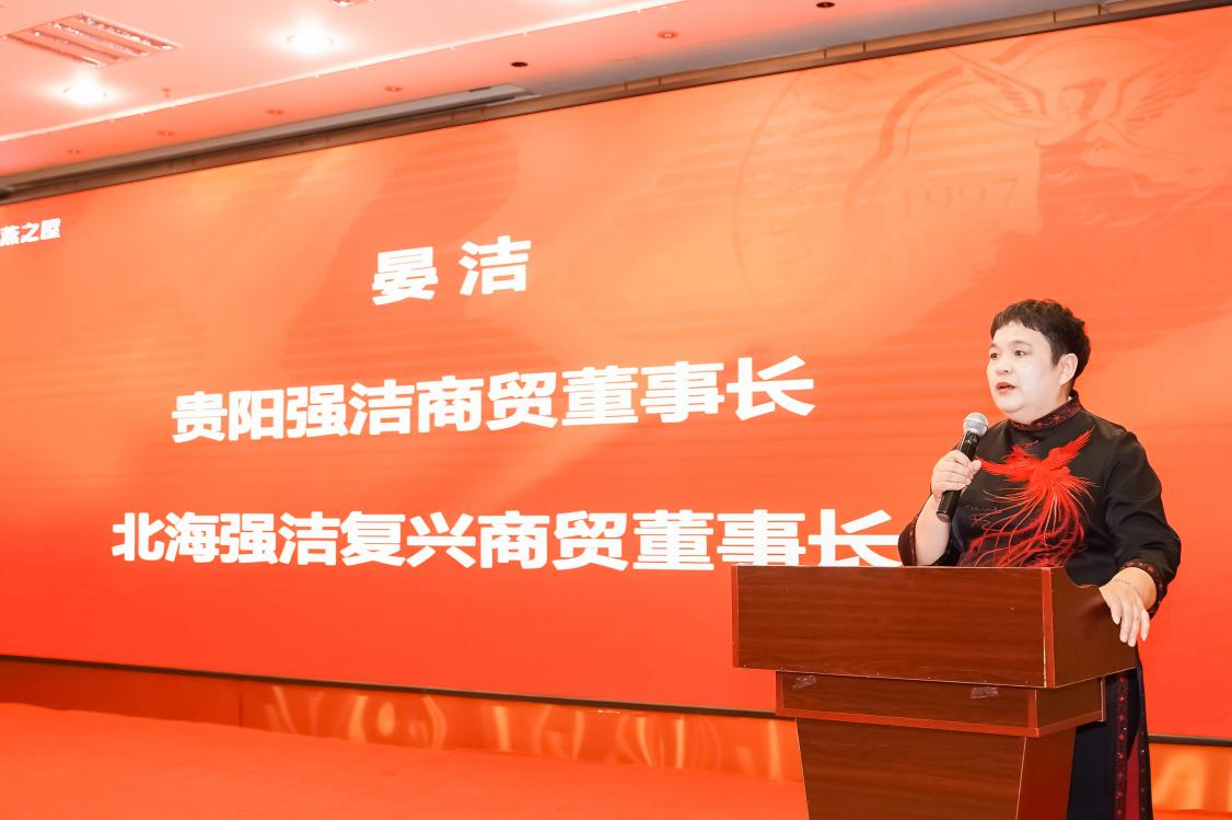 圖:貴陽強(qiáng)潔商貿(mào)、貴陽燕之屋商貿(mào)有限公司董事長(zhǎng)晏潔發(fā)表致辭
