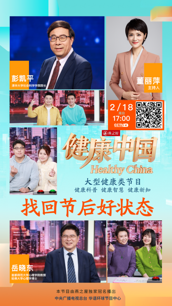 本期,由燕之屋獨(dú)家冠名的CCTV-4大型健康類欄目《健康中國(guó)》特邀首都師范大學(xué)心理學(xué)院教授、哈佛大學(xué)心理學(xué)博士岳曉東和清華大學(xué)社會(huì)科學(xué)學(xué)院院長(zhǎng)彭凱平教授,以及北京大學(xué)第三醫(yī)院運(yùn)動(dòng)醫(yī)學(xué)科的苗欣博士,與您共同探討如何找回節(jié)后好狀態(tài)。