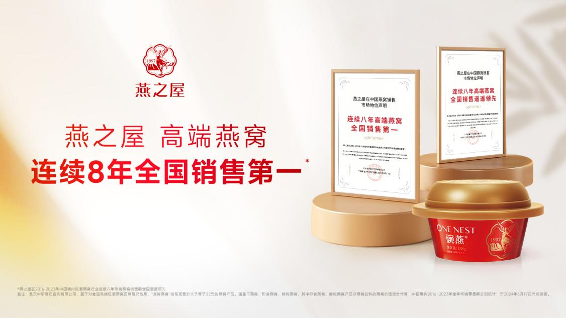 效法羲和馭天馬,志在長空牧群星。兩鬢斑白的方成如今還會時常想起自己20歲時的那個夏天,不甘人后、不畏艱險,向著光的方向一往無前。作為燕窩行業(yè)的頭部企業(yè),燕之屋同樣堅持著長期主義,秉承著“一碗好燕窩,滋潤天下人”的初心,26年來深耕不輟,為消費者帶來更健康、更營養(yǎng)、更美味、更便捷的燕窩滋養(yǎng)體驗,為國民的高品質(zhì)美好生活助力。截至2023年,燕之屋已連續(xù)八年高端燕窩全國銷售第一*(*燕之屋在2016-2023年中國境內(nèi)包裝燕窩行業(yè)連續(xù)八年高端燕窩銷售額全國第一,備注:北京中研世紀咨詢有限公司,基于對全國高端包裝燕窩品牌研究結(jié)果,“高端燕窩”指每克售價大于32元的燕窩產(chǎn)品,涵蓋干燕窩、即食燕窩、鮮燉燕窩,其中即食燕窩、鮮燉燕窩產(chǎn)品以燕窩投料的燕窩價值綜合計算,中國境內(nèi)2016-2023年全年終端零售額分別統(tǒng)計;于2024年6月17日完成調(diào)研)。